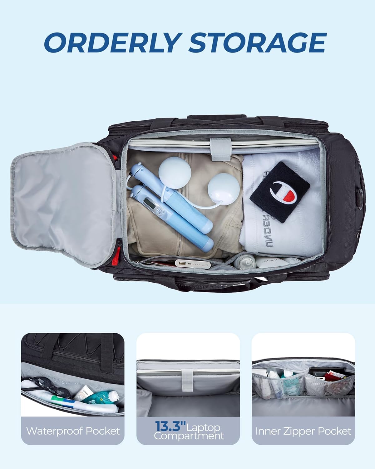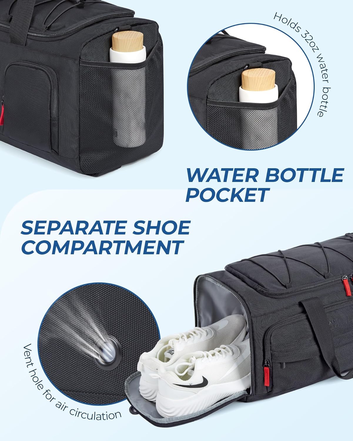 Gym Bag for Women & Men, 35L Sports Travel Duffel Bag with Shoe Laptop Compartment,Anti-Theft Carry On Weekender Bag for Airplane,Workout Overnight Backpack for Travel,Black