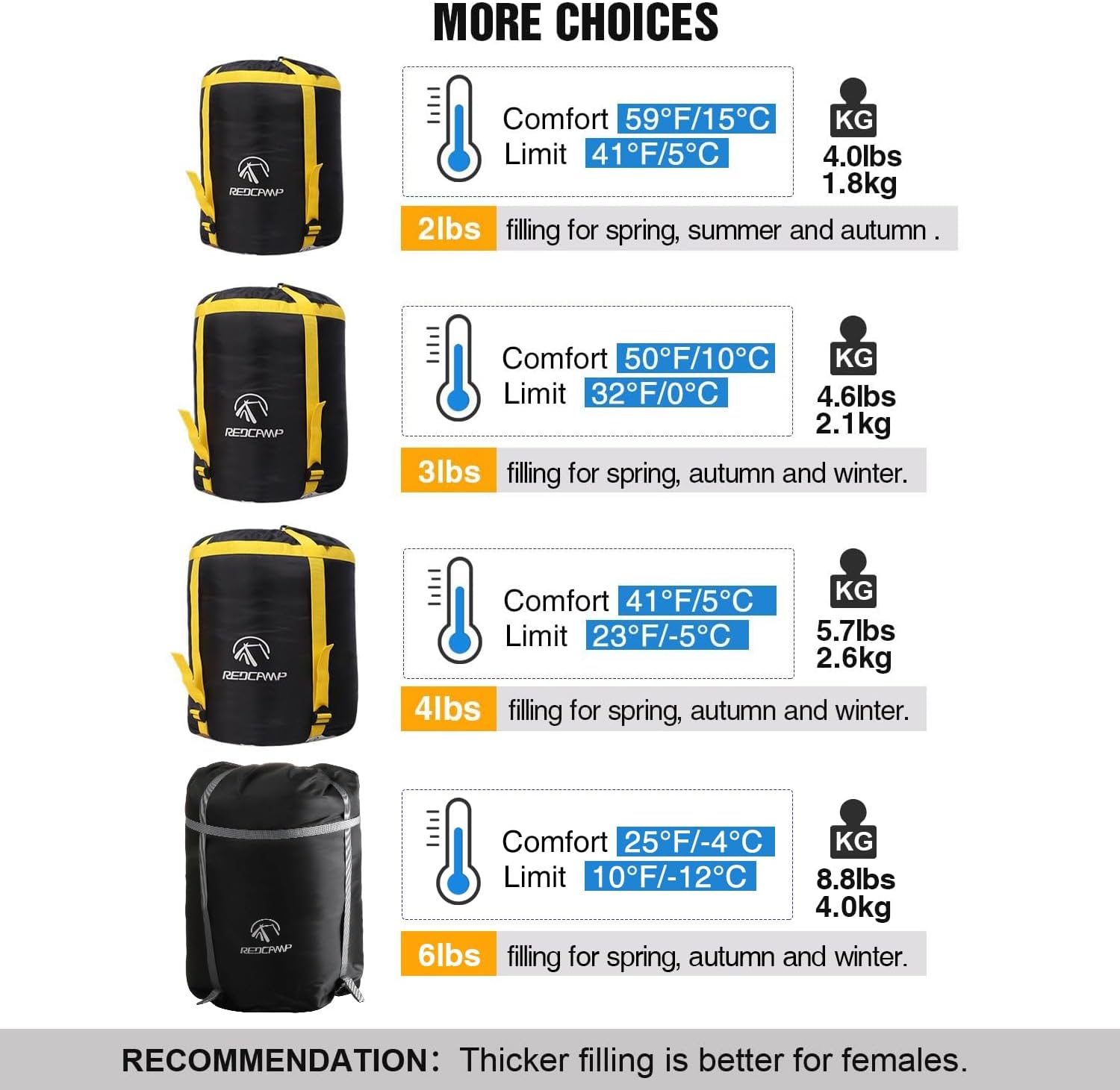 With its durable construction and compact design, the REDCAMP sleeping bag is lightweight and easy to carry, making it ideal for hikers and campers on the move. The envelope shape provides ample room to move around while trapping heat efficiently, ensuring maximum comfort throughout the night.